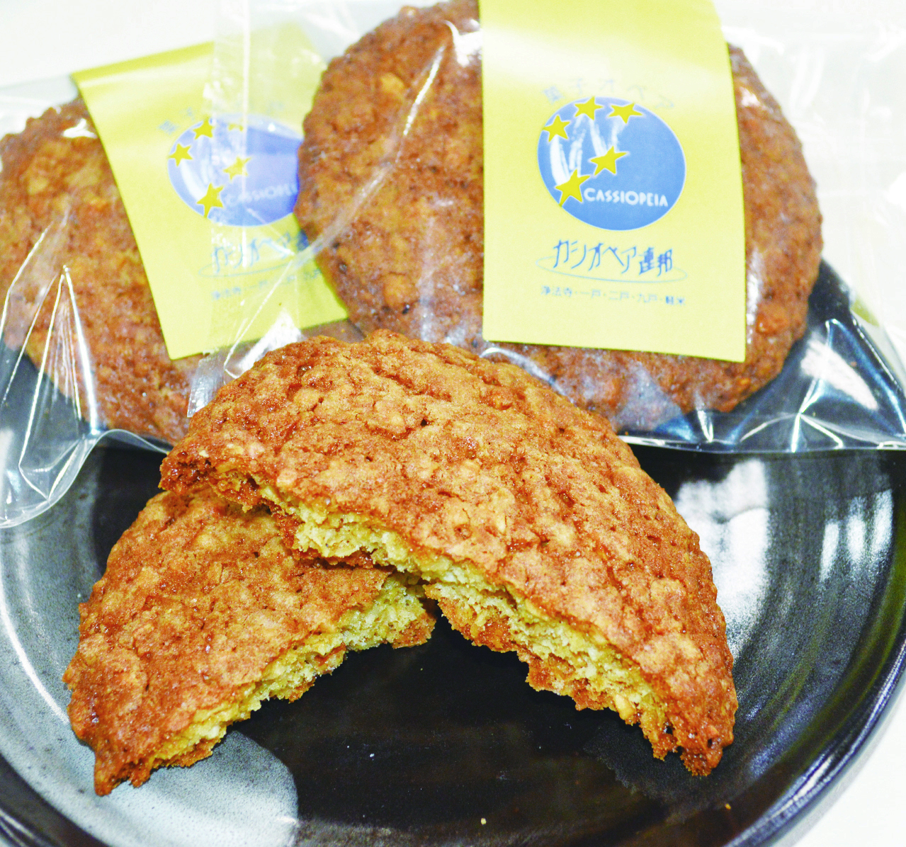 岩手県北五市町村のカシオペア連邦結成を記念に、星降る北の大地に育ったくるみや甘茶の他、オートミルカシューナッツ、ピーナッツなどふんだんに使って五つの味に香ばしく焼きあげたクッキーです。